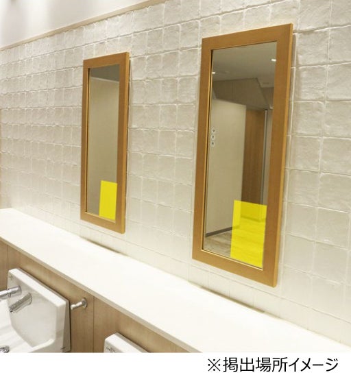 化粧室鏡の一部をメディア化。立ち止まって見ることができるため、高い視認率が期待できます。